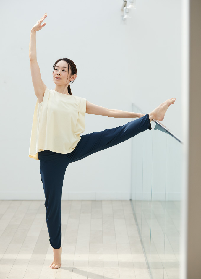 劇団四季に入るまでバレエはずっと続けていたので、幼い頃からチャコットのレオタードは憧れの存在でした。エレガントで品があって、所作の美しさが際立つ。だから「Chacott BALANCE」という、バレエで培った技術や素材を活かしたフィットネスウェアラインの存在を知り、すぐに惹かれました。
