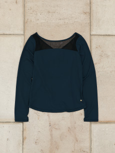 これはNILOというレオタードでも人気のストレッチ素材を使っていて、まるで着ていないかのように軽い。フィットネスのウェアはスポーティなものが多いので、随所にレーシーなものを用いた繊細なものはありそうでなかなか出会えません。