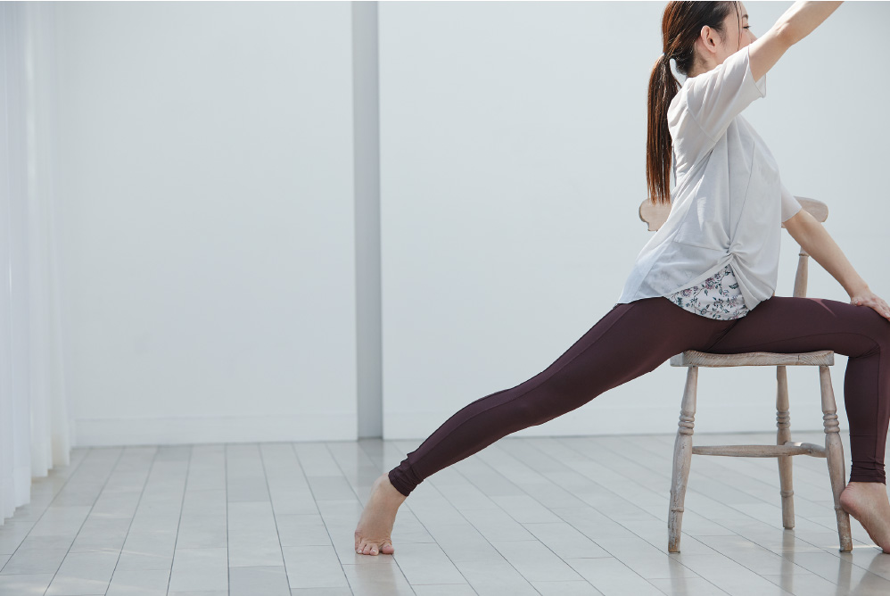 「Chacott BALANCE」のNILOというレオタードでも人気のストレッチ素材を使用したレギンスは驚くほど薄くて、着ていないかのように軽い。それでいて伸縮性にも優れているので、はき心地もとてもよい。おうち時間を過ごすのにもぴったりです。そして少しのあき時間に身体を動かせたら、言うことありません。