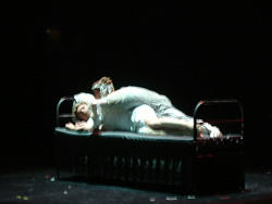 演出は全てモダンで、装置は1幕から3幕まで同じ。ライトを使って背景に色を出していましたが、基本的には黒と白というシャープなイメージ。