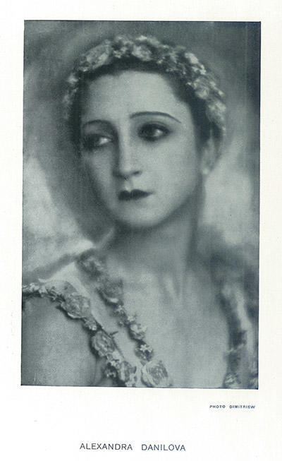 1929年5月、パリのサラ・ベルナール劇場での公演プログラムより。このシーズンにダニロワは『舞踏会』に出演したほか、ソヴィエトの工場の機械を題材にした『鋼鉄の踊り』でドーリンと踊っている。