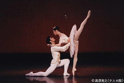 次の『Shinkirow』は、石川愉貴が川井郁子の曲に振付けたもの。アジア、東洋の思想を西洋の舞踊で現すという創作の方向は興味深い。踊ったのは振付者の石川と谷吹知早斗、伊藤志保、内藤夕紀をはじめとするアートバレエ難波津のダンサーたち。基礎がしっかりしたダンサーが多く、激しい動きの中になめらかさも。『サタネラ』よりグラン・パ・ド・ドゥは西田佑子と、今年、国内やアメリカのジャクソンなど各コンクールで数々受賞の大貫真幹。二人とも丁寧な技術に楽しげな演技が良い。