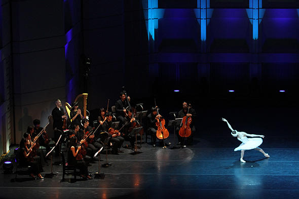 もうひとつのプログラム、東京と前橋で上演された「パ・ド・ドゥ for Toes and Fingers」(つま先と指のためのパ・ド・ドゥ)は、昨年の同名のプログラムの一部を更新したもので、日本のミュージシャンで構成される「フェスティバル・アンサンブル」とレーピンが舞台上で演奏。ザハーロワらのダンスと、レーピンのヴァイオリンをフィーチャーした名曲が交互に披露された。