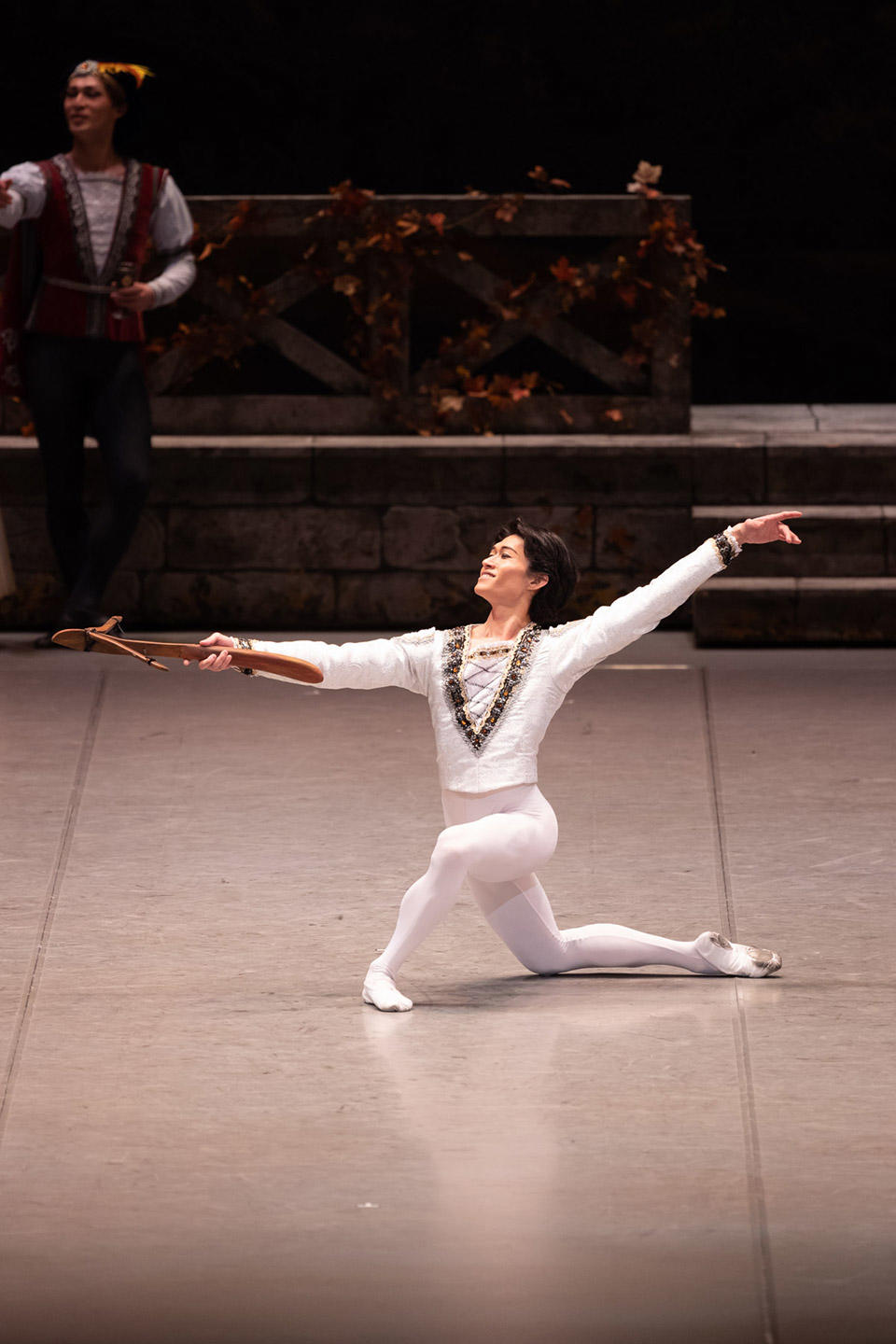 秋元は、立ち姿にも王子らしい品の良さを滲ませ、気さくに友人たちと杯を交わし、踊りもしたが、王妃とのやりとりには、鬱屈した心の内や神経質な一面をのぞかせもした。何といっても脚さばきが美しく、第1幕では弓を手に伸びやかにソロを踊り、第3幕のグラン・パ・ド・ドゥでは、しなやかなジャンプや回転技をきれいにこなした。対する川島は、第2幕では細い手脚を繊細に操り、王子とのやりとりでは豊かに情感を紡ぎ、しっとりとオデットを演じた。オディールとして登場した第3幕では、グラン・フェッテでダブルを入れるなど健闘したが、王子を威圧し惑わす魔性のパワーは今一つだった。第4幕で、王子を湖に引き込もうとロットバルトが起こす嵐は大きく波打つ布でダイナミックに表わされたが、うねる布の波間で王子が必死にあらがう様を秋元が驚くほどリアルに演じ、オデットが彼の元へ飛び込むと同時にロットバルトが滅び、王子が娘の姿に戻ったオデットを抱きしめる幕切れのシーンを印象づけた。
