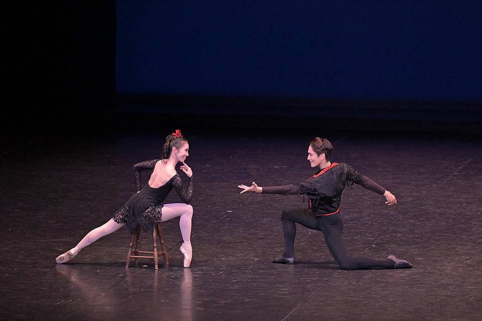 第3部はオペラ『ファウスト』で知られるシャルル・グノーの管弦楽曲に振付けた『シンフォニエッタ』。牧阿佐美のシンフォニックな振付は、ちょっと気取ったような魅力的な愛らしさがあり、細部にまで良く気持ちが行き届いている。曲調と振りが共鳴し、全体のリズム感も心地よく感じられた。織山万梨子、水井駿介ほかが踊った。