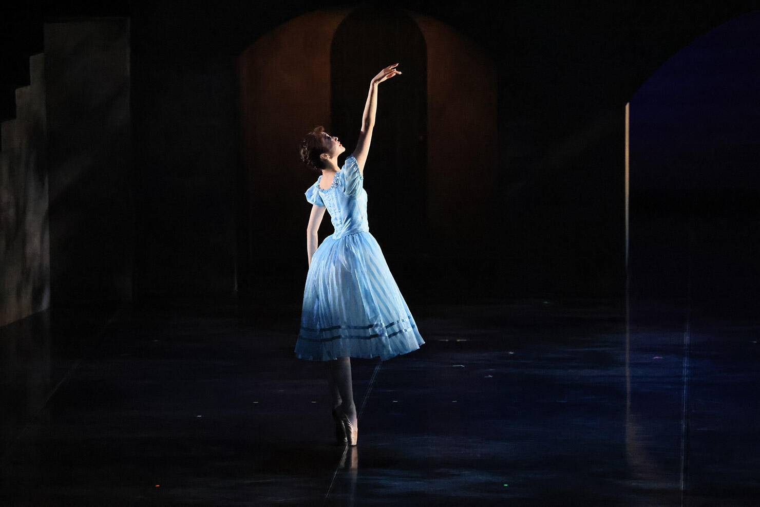 第二幕に入ると、薄暗がりにモノトーンで展開してきた舞台は、やや明るくなりカラフルな色彩を見せる。パリの街頭では「自由・平等・博愛」を標榜して立ち上がった民衆が、バリケードを築いて激しい市街戦を戦っている。トリコロールの旗を掲げた革命軍を背景に、美しく成長したコゼット(大塚アリス)が登場し、哀しみと希望を全身で表した素晴らしいヴァリエーションを踊る。コゼットは、やはりビクトル・ユーゴーの小説『ノートルダム・ド・パリ』の主人公、エスメラルダように、成長の過程に宿命的な不幸を背負っている。コゼットは母のファンティーヌが、コートはもちろん前歯と髪の毛までを売り払って、彼女を守り抜いたことは知らない。しかし、記憶にはない母の悲哀が彼女の指先に込められているかのように、舞台に哀しいラインを描いて、その美しさが際立ち一段と輝くのである。コゼットは、ヴァルジャンの深い愛情に育まれて素晴らしい女性に成長しており、やがて彼女は、革命軍の闊達な兵士マリユス(昂師吏功)との運命的な愛に陥る。