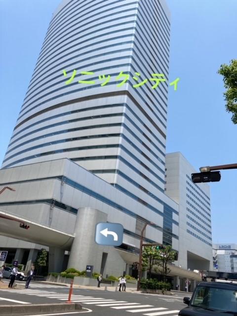 シーノ大宮ビルの隣はソニックシティが見えます。信号を左折します。